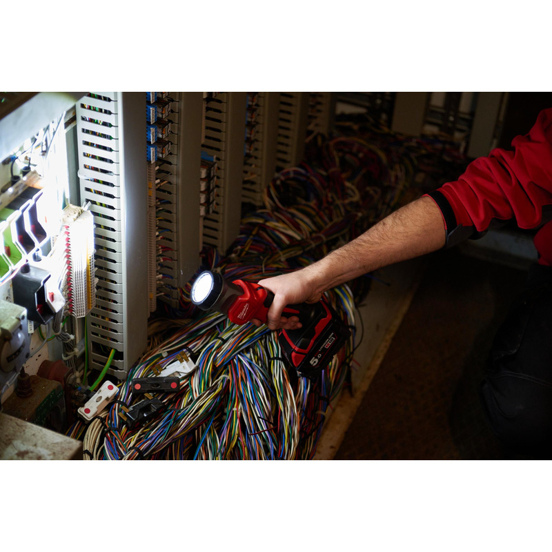 • M18TLED work light – 120 lumen LED light is 2x brighter and whiter than conventional incandescent bulbs. 135° rotating head and integrated hook for increased ergonomics