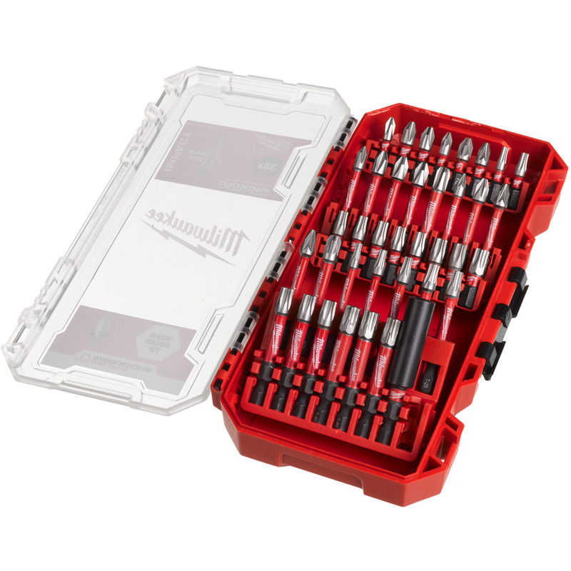 | Pack contents | SHOCKWAVE™ screwdriving bits: 16 x 25 mm length 1 x PH1 / 2 x PH2, 1 x PZ1 / 2 x PZ2 , 1 x TX10 / 1 x TX15 / 2 x TX20 / 3 x TX25 / 2 x TX30 / 1 x TX40. 21 x 50 mm length 1 x PH1 / 3 x PH2 / 1 x PH3, 1 x PZ1 / 3 x PZ2 / 1 x PZ3, 1 x TX10 / 1 x TX15 / 1 x TX20 / 2 x TX25 / 3 x TX30 / 3 x TX40. 1 x SHOCKWAVE™ magnetic bit holder 60 mm length |